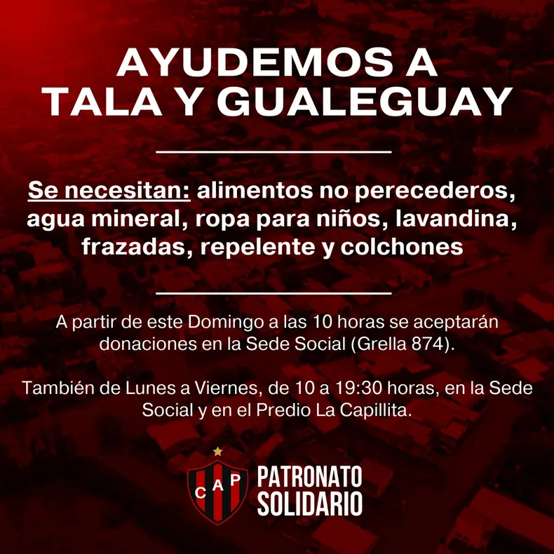 Patronato recibirá donaciones para los afectados por las inundaciones en Gualeguay y Tala