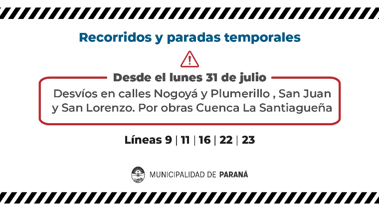 -No habrá circulación vehicular en Calle Tejeiro Martínez, desde Santiago del Estero hasta su desembocadura con Tucumán, a excepción para el ingreso y egreso de los automóviles de los vecinos de la cuadra.