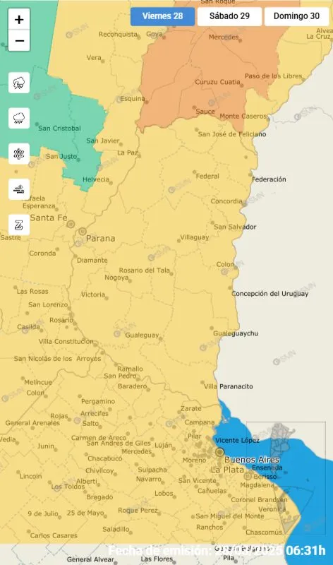 El Servicio Meteorológico Nacional -SMN- renovó el alerta amarillo por tormentas para los 17 departamentos de Entre Ríos. Rige para este viernes en horas de la mañana y vence al mediodía.