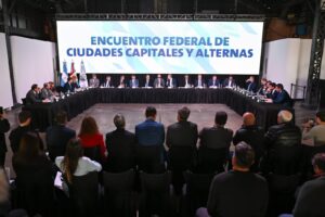 Más de 20 presidentes municipales de todo el país, junto al ministro del Interior, Guillermo Francos, trataron problemáticas comunes como transporte y obra pública. Fue en el Encuentro Federal de Ciudades Capitales y Alternas. Estuvo el gobernador de Santa Fe, Maximiliano Pullaro.