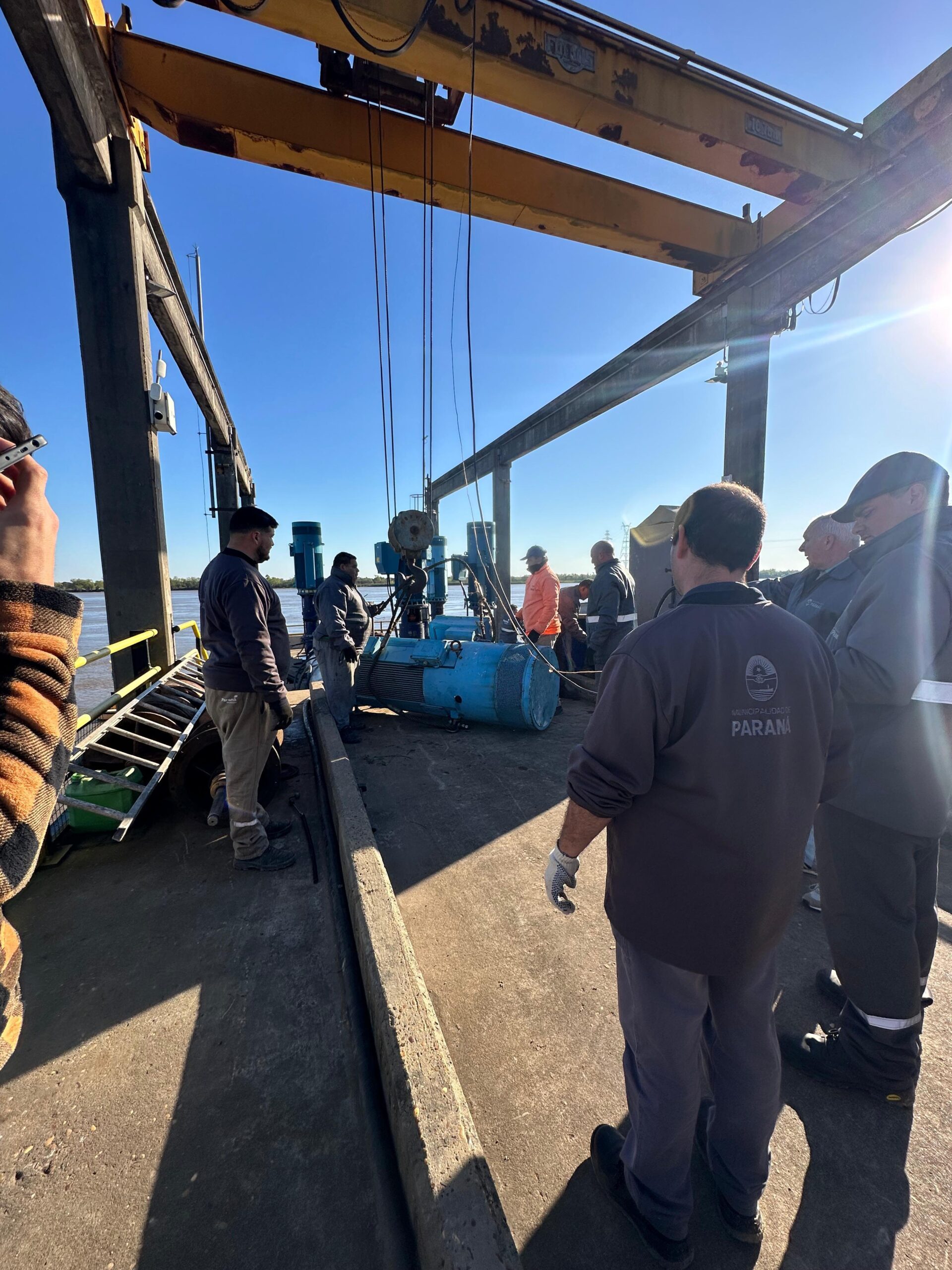 Finalizaron los trabajos de reparación y reactivación en el sistema de captación de agua cruda para la potabilización, por los daños ocasionados por la interrupción de la energía eléctrica durante la madrugada.