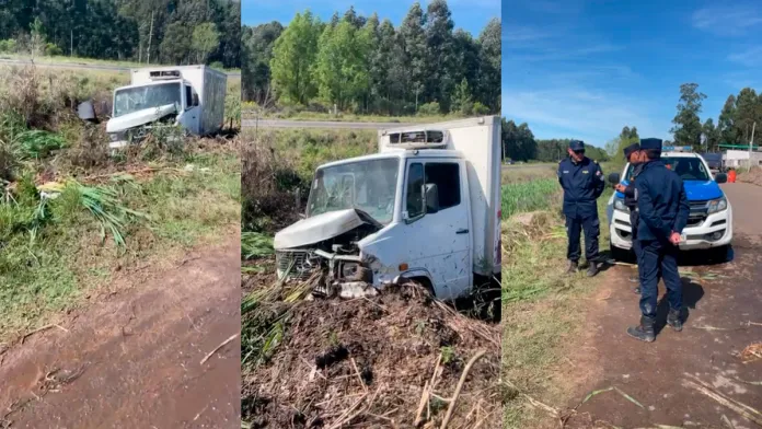 El accidente ocurrió aproximadamente en el kilómetro 245, en inmediaciones del acceso Puerto Yeruá. El camionero, mayor de 60 años, habría sufrido un problema cardíaco y se desvaneció. Al perder el manejo del volante, el vehículo, que circulaba en sentido sur-norte, cruzó de carril y terminó impactando contra el montículo de tierra en medio de los carriles.
