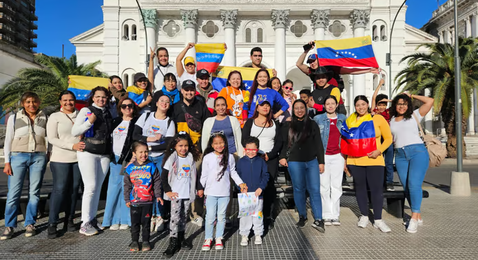 . «Gracias Paraná por el amor y el recibimiento», manifestaron las familias que se concentraron en la Plaza 1 de Mayo de la capital entrerriana en contra del presidente Maduro.