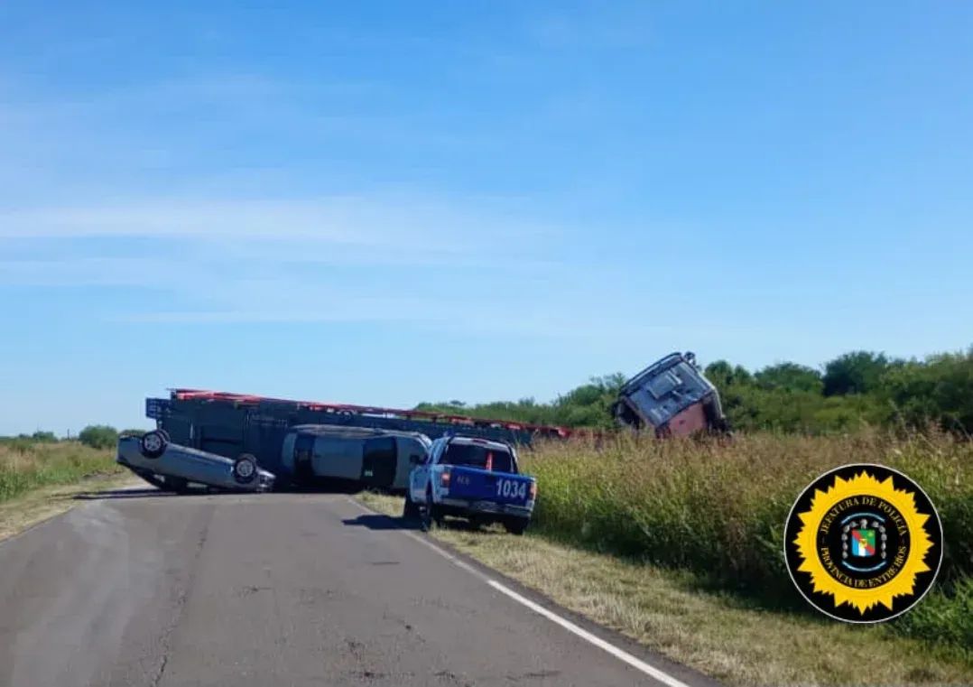 Un camión de origen brasileño que transportaba vehículos volcó este domingo por la mañana en Entre Ríos. Fue sobre la Ruta Provincial Nº 6, a la altura del kilómetro 151, a unos 800 metros al norte del ingreso a la comuna de Guardamonte, en el departamento Tala.